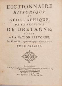 OGÉE (Jean-Baptiste). - Dictionnaire historique et géographique, de la province de Bretagne, dédié à la nation bretonne. Nantes, Vatar fils aîné, 1778-1780.