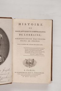 •MONTJOIE (C.F.L. de) – Histoire de Marie-Antoinette Josephe Jeanne de Lorraine, Archiduchesse d’Autriche, Reine de France, par l’Auteur de l’éloge de Louis XVI.