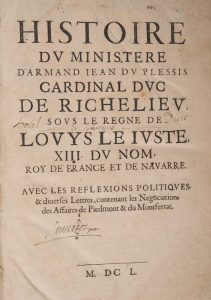 [HISTOIRE] [VIALART (Charles)]. - Histoire du ministère d’Armand Jean Du Plessis Cardinal Duc de Richelieu, sous le règne de Louys le Juste, XIII. du nom, Roy de France et de Navarre. Avec les reflexions politiques & diverses lettres contenant...