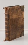 Plein veau, dos à nerfs, angles renforcés avec des pièces métalliques, fermoires absents.