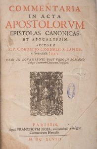 [RELIGION] CORNELIUS A LAPIDE (Cornelius). – Commentaria in acta apostolorum, epistolas cononicas, et apocalypsin. [Paris] Parisiis, Franciscum Noel, 1648.