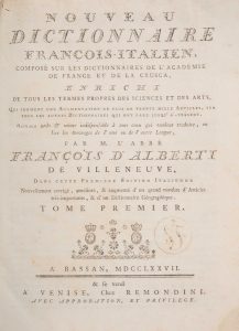 [LITTÉRATURE] - ALBERTI DE VILLENEUVE (François d’). - Nouveau dictionnaire françois – italien […] dans cette première édition italienne Nouvellement corrigé, amélioré, & augmenté […]