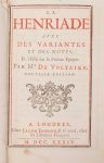 [LITTÉRATURE] VOLTAIRE [AROUET (François Marie) Pseud.]. - la Henriade avec des variantes et des notes, et l’essai sur le Poëme Epique Londres, Jacob Tonson et se vend chez les libraires francois, 1734.