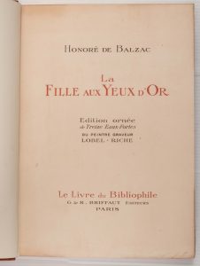 BALZAC (Honoré de) – [LOBEL-RICHE] – La fille aux yeux d’or Paris, G. & R. Briffaut Editeurs, collection « Le Livre du Bibliophile » 1923.