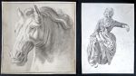 9 dessins ou esquisses sur 7 feuilles : 5 personnages en pied, 2 figures, 1 groupe avec la Vierge et 1 tête de cheval.