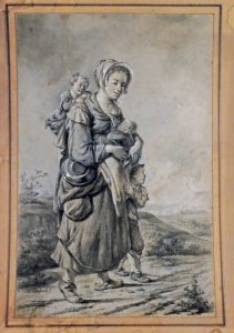 ESCHARD, Charles (1748-1810).- Mère avec ses trois enfants traversant la campagne.