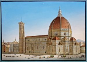 BIASIOLI, Angelo (1790-1830).- Vue de la cathédrale Santa Maria del Fiore à Florence avec cortège funèbre et procession d'ecclésiastiques.