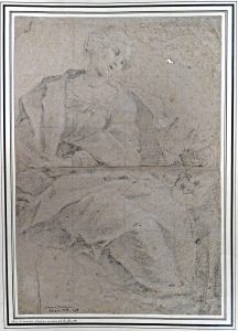 [Cercle de LANFRANCO, Giovanni (1582-1647)].- Étude d'une femme avec un putto à sa gauche (au verso : esquisse de deux têtes).