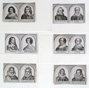 Galerie de portraits gravés de papes, empereurs et rois, princes électeurs du Saint Empire et autres dignitaires civils et ecclésiastiques du 16e siècle.