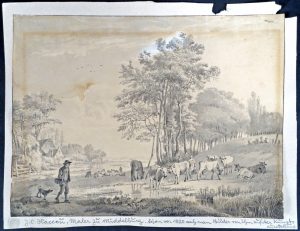 DESSIN ORIGINAL, pinceau et lavis d'encre grise, 17,8 x 23,5 cm, papier vergé filigrané, signé "J.C. Haccou" en bas à gauche, fixé par les coins sur f. de support (bords et coins sup. lég. brunis, pet. défauts aux marges g. et dr.).