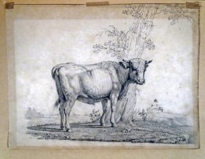 VERBOECKHOVEN, Eugène (1798-1881).- Étude d'un jeune taureau près d'un arbre.