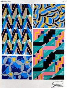[ Paris, Ch. Massin & Cie, 1928]. 20 pl. de couleurs vives au pochoir, certaines avec rehauts d'or ou d'argent, 30 x 25 cm + bonnes marges, papier vélin, cachets avec signatures sous les champs en bas à dr., pl. numérotées de 1 à 20 (5 pl. aux marges verticales rognées sans atteintes aux sujets). Sous farde demi-toile à cordons, étiquette triangulaire avec titre imprimé collée sur le plat sup. (manque de la pointe inf. du triangle). JOINT : GLADKY, Serge (1880-c.1930).- Nouvelles Compositions Décoratives. 2e série. Paris, Charles Moreau, [1925]. 2 pl. (n° 29 et 35; sur 48), technique identique, 24 x 17 cm + marges, papier vélin (incomplet).