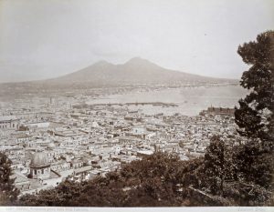 19,5 x 24,5 cm, sauf 12 de 20,3 x 25,5 cm, collées en plein sur ff. de support montés sur onglets, légendes en italien et nom du photographe dactyl. en doré (piqûres, nombreuses sur le 1er f. de support, taches sur qqs-uns, pet. déch. marg., mouill. sur les prem. ff., nombreuses pet. taches (?) sur une photo). Dans un album in-4° oblong ad hoc : demi-chagrin noir à coins, plats de percaline verte cernée de filets dorés, plat sup. titré "Europe" en doré (abîmé et frotté, dos manquant, défauts). Figurent surtout des vues et des monuments. Italie (72) : Naples (panoramas notamment depuis le Vomero, Porte de Capoue, intérieur de la Basilique Santa Chiara...), Pompéi (panorama avec le Vésuve en fond, éruptions du 5-7-1895 et du 26-4-1872, temple de la Fortune...), Venise (rive des Esclavons et monument à Victor Emmanuel II, place Saint-Marc dont une photo avec une foule importante, palais des Doges...), Rome (Cortile della Pigna, fontaine des chevaux marins à la Villa Borghese, fontaine de Moise au Pincio...), Florence (Galerie des Offices et Palazzo Vecchio, le Dôme...), Lac de Côme (Pointe Balbaniello, Villa D'Este, panoramas sur le lac...), Capri, Sorrente, etc.-- Suisse (6) : Lucerne (le lion, vue avec le Pilatus...) et Berne.