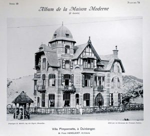 [ Bruxelles, F. Salmain, 1908 [- 1913]]. 6 vol. in-4°; 254 (sur 256) pl. (incomplet des pl. 98 et 109 dans l'année 3, piqûres à l'année 3 - surtout aux pp. de texte - et un peu dans l'année 4, pl. de l'année 6 lég. brunies, notes mss d'un architecte au verso d'1 pl. et de futurs propriétaires exprimant leurs desiderata sur 1 pl. de l'année 6, rares pet. défauts). En ff., sous chemises d'éd. à lacets en demi-toile bleu clair sauf une en pleine toile bleu foncé (pet. défauts). Ex. contenant les 6 années de cette revue, illustré de 254 (sur 256) photographies de façades précédées d'un calque légendé (sauf pour les détails de façades ou les intérieurs) donnant des informations architecturales, le nom des propriétaires et l'emplacement de la maison. Travaux signés J. Diongre, L. Kuypers, Jos. Otto, G. Veldeman, H. Van Massenhove, J. Vermeersch, R. Moenaert, Achille Raoux, Vaes et Westenberg, M. Coppieters, J. de Lattin, etc. exécutés à Bruxelles (Laeken et Schaerbeek surtout) ou à Anvers (av. Van Rijswijck et av. Bosmans surtout).