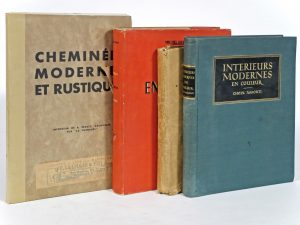 Intérieurs modernes en couleur. Choix assorti de 80 projets en couleur par des artistes modernes, provenant des volumes épuisés I-IV de la série du même nom. Stuttgart, Hoffman, [1929] (qqs rouss.).-- PERRET, Aug.- Cheminées modernes et rustiques. P., Sinjon, [c. 1930], en ff., sous chemise d'éd. Avec 48 pl.; étiq. librairie F. Salmain.-- DUFFET, M.- Meubles ensembles décors. P., Éd. du décor d'aujourd'hui, 1945. Seconde édition; tirage à 2.000 ex. (n° 1939).-- AZZONI, P.-- Ambienti. Décor d'aujourd'hui. Decoraçoes moderneas. Monili moderni ed antichi in ambienti moderni [...]. Milano, Görlich, 1947. Troisième édition; étiq. F. Salmain.