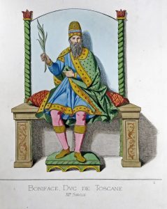 Paris, A. Lévy (imprimé chez Bonaventure et Ducessois), 1860 [- 1861]. 3 vol. in-f°; 192 (sur 200) h.-t. protégés d'une serpente (texte n.c., rouss., salissures marg. et taches, qqs pl. lég. jaunies, cachets sur les titres, déch. marg., mouill. marg. sur 1 p. du vol. III). Rel. de l'époque : demi-chagrin noir à coins, plats de percaline chagrinée mauve cernée d'un double filet doré, dos fleuronnés dorés (rel. du vol. III restaurée avec dos originel conservé, chagrin du vol. I passé, plats, mors, nerfs et coiffes frottés, mors du vol. I en partie fendus, coupes et coins - fort - émoussés). Édition revue par Charles Blanc, sauf pour la partie du XIIe s. qui semble originale (éd. orig. : 1827-1828). Illustré de 192 planches gravées sur acier par Paul Mercuri, rehaussées de coloris francs et figurant des costumes portés par des souverains, des nobles, des civils, des militaires ou religieux italiens ou français. Quelques vues intérieures de palais ou monuments (place de Sienne).