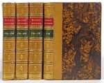 On s'abonne à Paris, chez Buisson, 1785 [- 1789]. 4 vol. in-8°; 259 h.-t. (incomplet du dernier cahier de la 2e année et des 5 prem. cahiers de la 3e année; qqs pp. et pl. lég. brunies, qqs déch. marg., le plus souvent renforcées ou restaurées, marges de la p. 7 du vol. I renforcées à cause de déch., qqs piqûres ou rouss., qqs pl. courtes de marges). Rel. de l'époque : demi-veau, plats de papier marbré, dos fleuronnés dorés à nerfs, tr. rouges (trous et galeries de vers, pet. défauts). Ex. contenant les 4 années de cette revue, devenue à partir de 1786 le "Magasin des modes nouvelles, françaises et anglaises". Illustré de 259 jolies planches par Duhamel, plusieurs dépliantes et la grande majorité rehaussée, figurant des tenues vestimentaires (principalement féminines), des chapeaux, des meubles, de l'argenterie, etc.