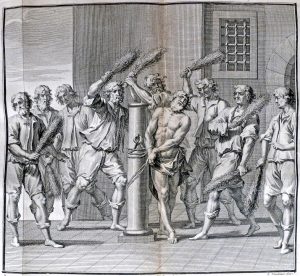 Lugduni Batavorum [ Leide], apud Janssonios Vander Aa, 1728. In-4° : [32 dont dédicace gravée]-384-[19]-[1 bl.] pp.; 3 h.-t. (nombreuses pet. rouss., mouill. marg. au début). Rel. hollandaise de l'époque : plein vélin à couture apparente, dos lisse titré à la plume, tr. jaspées (plis et déch. avec manque dans la garde sup., mention ms. du 19e s. en partie effacée sur la même garde). Troisième édition (éd. orig. : 1628) des commentaires de Ramos dénonçant les erreurs de Tribonien dans les parties des Institutes relatives aux parricides. Illustré d'1 dédicace gravée, de 3 planches dont deux dépliantes, de quelques in texto et d'1 vignette de titre.