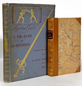 JOINT : CASTLE, Egerton.- L'escrime et les escrimeurs depuis le moyen âge jusqu'au XVIIIe s. Trad. de l'anglais par A. Fierlants. P., Ollendorff, 1888, in-8° rel. souple ill. d'éd.
