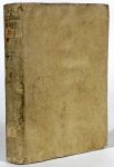 Paris, Guillaume Loyson [- Jean Houzé], 1644 [- 1643]. 2 ouvr. en 1 vol. in-4° : titre gravé-[86]-281-[3], [4]-85-[2] pp. (rouss., claires mouill., pp. brunies au début, déch. ou défauts dans le papier marg., déch. sans manque à la p. 175, marge inf. du titre gravé découpée, galeries et trou de vers marg., taches d'encre, qqs plis dans le texte). Rel. de l'époque : plein parchemin, dos lisse titré à la plume (ex-libris armorié et note ms. sur le contreplat sup., armoiries dessinées à la plume sur la garde sup. déchirée, claires mouill. à la garde inf.). Traité sur l'art de la guerre (éd. orig. : 1636) constitué d'un résumé d'extraits des Guerres des Gaules et Civiles de César, avec des remarques par de Rohan, et d'une étude comparée des tactiques militaires anciennes et modernes. Illustré d'1 titre gravé. Le second ouvrage, "De l'intérest des princes", précédé d'une page de titre propre et daté 1643, est une étude politique de différents pays (Espagne, France, Italie, Angleterre...), notamment de leur intérêt à se rallier à la France ou l'Espagne, et de quelques guerres de succession.