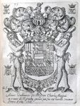 Paris, Pierre Bessin, 1662. In-f° : [41] ff.; 199 h.-t. (inc. du h.-t. 142 bis, qqs trous, qqs taches, qqs manques de papier aux coins des pp., qqs rouss. et/ou salissures). Rel. de l'époque : plein veau tacheté, dos fleuronné doré à nerfs (mors, coiffes et qqs coins restaurés, manque restauré avec un autre cuir au plat inf., gardes renouvelées, taches). Sous étui moderne en papier. Édition revue, corrigée, augmentée (éd. orig. : 1663). Notre ex. est constitué de : 41 ff.lim. (titre et 40 ff. signés A, D-M) et 199 blasons hors texte signés ou monogrammés P. Nolin (1 frontispice,- 1 f. au blason de Molé-, 184 pl. chiffrées,- 5 pl. "bis" i.e. 66, 92, 122, 131 et 135,- et 8 planches in fine numérotées ou lettrées (a-c, 1-3 et 1-2). Saffroy signale pour l'éd. de 1663 : 41 ff.lim. (en se trompant puisqu'il ne signale pas l'absence des cahiers B et C) et 199 hors texte (front.,- pl. de Molé,- 1 pl. dépliante "Méthode pour apprendre le blason",- 193 pl. chiffrées,- 6 pl. "bis" i.e. les mêmes que dans notre éd. + pl. 142 bis). Notre ex. est donc probablement de la pl. 142bis mais peut-être aussi d'1 pl. dépliante et des pl. 185-193.