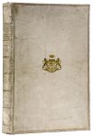 Leyde, Jacob de Meurs, 1665. In-f° : [16 dont front. et portrait]-290, [2]-134 pp.; 1 carte (ex. lavé et restauré aux coins ou à qqs déchirures, une 10aine de doubles pages remargées et 1 double page volante à marges coupées dans la 2de partie, erreurs de pagination sans manque, incomplet du dernier f. de la 2de partie i.e. errata ?). Rel. armoriée moderne : plein vélin, double filet doré cernant les plats armoriés, dos lisse titré doré, tranches dorées sur marbrures (lég. sali). Sous étui. ÉDITION ORIGINALE DE LA TRADUCTION par Jean-Baptiste Carpentier, parue la même année que l'édition originale en néerlandais, de ce récit de voyage. Cette ambassade marque le début de l'établissement du commerce hollandais avec la Chine. De 1655 à 1657, Nieuhof (1618-1672) et les marchands de Goyer et de Keyzer sillonnèrent le pays mais l'accueil fut réservé et le résultat commercial mitigé. Or la Chine était tellement peu connue à l'époque que le succès de l'ouvrage fut immédiat, les illustrations y contribuant largement par : 1 titre gravé (le Cam de Chine et sa cour devant un supplicié),- 1 portrait du grand Colbert, alors Contrôleur général des finances et dédicataire de l'ouvrage,- 1 grande carte,- 33 doubles pages (vues de villes dont cour de la Cité interdite) et 110 grands in texto (villes, cérémonies, costumes....) légendés en néerlandais.