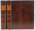 Te Amsterdam, by S.J. Baalde; Utrecht, by J. van Schoonhoven & Comp., 1776 [in fine : Ter Boekdrukkerije van Joh. Jos. Besseling te Utrecht]. 2 vol. in-4° : viii (incl. gegraveerde titel)-[6]-484-[2], [16 incl. gegraveerde titel]-455-[1] pp.; 72 en 52 gevouwen pln, 1 uitvouwbare kaart (prospectus van 8 genummerde pp. gebonden in het voorwerk, bleke marg. watervl. aan enkele pagina's, enkele potloodnotities). Moderne vollederen banden door Michel Fassin : platten met omlijsting van blinde rolstempel, rug met ribben, titelschild en blindstempeling, in 2 foedralen bekleed met gemarmerd papier. EERSTE NEDERLANDSE UITGAVE van deze beschrijving betreffende de Deense expeditie naar het Midden-Oosten (1ste Duitse uitg. : 1774) geïllustreerd met 112 al dan niet uitslaande kopergravures, 12 kaarten en 1 grote uitvouwbare kaart van Jemen. Worden afgebeeld : autochtonen en klederdracht, landschappen en monumenten (o.a. pagoden, minaretten en tempels), kunstvoorwerpen, godheden, kalligrafie, enz. In dit werk levert de jonge Carsten Niebuhr (1733-1815), astronoom en kartograaf, het relaas van de reis (1761-1767) ondernomen in opdracht van de Deense koning en waarvan hij als enige overlevende terugkeert. Zijn verslag maakte ophef en was baanbrekend, en de kaart van Jemen bleef gedurende lange tijd een belangrijke referentie.