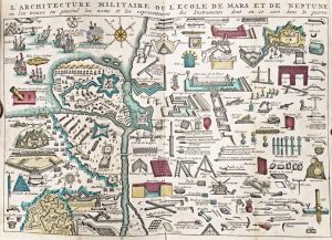 Atlas de poche pour les officiers et voyageurs avec des informations sur les champs de bataille, l'architecture militaire et les plans de forts. Illustré de 41 pl. dont plusieurs extraites des "Tablettes guerrières" par Paul de la Feuille (marges verticales rognées dans le champ). Rel. demi-basane de l'ép. Joint : 2 cartes, une de la Méditerranée et l'autre de la Hollande.