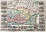 Amsterdam, J. Ratelband, 1735. In-8°: 16 bln; 41 pl., grotendeels geaquarelleerd (linker- en rechtermarge van de meeste kaarten afgesneden in de prent). 19de-eeuwse band: half basaan, plat met gemarmerd papier, gladde rug (licht geschaafde band met beschadigde hoeken). Zakatlas met diverse plattegronden van forten, militaire architectuur en informatie over het slagveld. Nederlandse inleiding, 1 plaat met oorlogswapens en 40 genummerde kaarten, waaronder: 1 wereldkaart, 5 kaarten met werelddelen en meer gedetailleerde kaarten van landen (Duitsland, Engeland, Frankrijk,...), streken (Vlaanderen, Beieren,...) en stadsplannen. Meerdere kaarten komen uit "Les tablettes guerrières" van Paul de la Feuille. Een handgeschreven lijst met de kaarten is in het volume ingebonden.