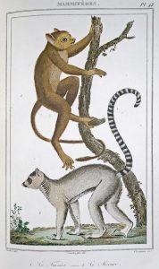Paris, Baudouin frères, et chez N. Delangle (imprimerie de Jules Didot aîné), 1826 [- 1828]. 32 (sur 33 ?) vol. in-8° (dont 1 vol. d'atlas); 80 (sur 200 ?) h.-t. (incomplet notamment d'1 vol. d'atlas ?, rousseurs, nombreuses sur de rares pp.). Rel. de l'époque : demi-veau bleu, plats de papier chagriné, dos lisses fleuronnés dorés en long, tr. marbrées (veau décoloré et jauni, qqs mors et/ou plats en partie frottés, qqs mort part. fendus, coins émoussés). Ex. illustré de 80 planches dont 73 rehaussées, la grande majorité protégées d'une serpente. Volumes consacrés aux généralités et à la théorie de la terre (2 vol.), aux minéraux (6 vol.), aux époques de la nature (1 vol.), aux végétaux (1 vol.), aux animaux (9 vol.), aux oiseaux (9 vol.), à l'histoire des progrès des sciences naturelles depuis 1789 par Cuvier (3 vol.) et à l'atlas (1 vol.). Nissen signale 33 volumes pour cette édition mais un ex. venu par nos soins en octobre 2016 en comptait 34.