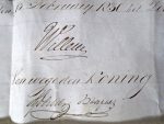 's Gravenhage, 13 février 1830. En néerlandais, peau de vélin, 61 x 75 cm, armoiries peintes avec rehauts d'or, enroulé. Copie conforme attestée, au verso, par le Secrétaire général du Gouvernement de la Province de Brabant, le 25 mars 1836.