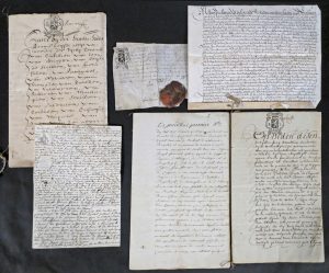 6 documents ou liasses sur parchemin et 10 sur papier. Transports de rentes, ventes de terres, bois et fermes au nom du baron de Stassart, Foullé, van den Coelput et autres.-- Contrat de location d'une maison sise rue Rollebeek à Bruxelles.-- Contrat de mariage entre le comte de Cuypers d'Alsinghen et Mlle la comtesse de Bavière Grosberg etc.