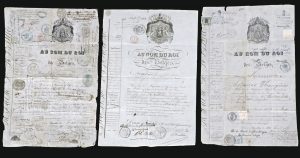 3 laisser-passer délivrés au nom du roi des Belges [Léopold Ier et Léopold II].