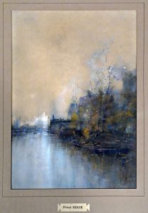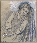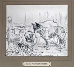 Décembre 1893. 22 dessins, 8 l.a.s. et 2 doc. Sous chemise à rabats en toile bise (abîmée) dont le plat sup. est titré : "A Victor Stiénon, secrétaire honoraire des Musées royaux de Peinture & Sculpture et des Expositions triennales et Universelles de Bruxelles. Les Artistes reconnaisants". - 22 DESSINS OU AQUARELLES, signés ou monogrammés, qqs-uns titrés, collés en plein sur support de carton, sous passe-partout. Par ordre alphabétique : (1). ART, Berthe.- Nature morte à la ronce, champignons et verre. Fusain, 16 x 24 cm.-- (2). ASSELBERGS, Alphonse.- Paysage de montagne avec torrent. Encre de Chine et rehauts de lavis blanc, 26,5 x 15,5 cm.-- (3). BINJÉ, Franz.- Impressions, Paysage automnal. Aquarelle, 28,5 x 19,5 cm.-- (4). CLUYSENAER, Alfred.- Portrait. Crayon gras noir, 21 x 16,5 cm (piqûres).-- (5). DE HAAS, Jan-H.-L.- Vaches paissant. Mine de graphite, 14 x 26 cm (rouss.).-- (6). DE MOL, Adolphe.- "Charité". Crayon gras noir et lavis gris, 11 x 22 cm (rouss. marg.).-- (7). DE SCHAMPHELEER, Edmond.- Bateau sur un étang. Crayon noir, 14 x 23 cm.-- (8). GOETHALS, baron Jules.- Bateau, village à l'arrière-plan. Aquarelle, 17 x 24,5 cm (2 rouss. dans le bas).-- (9). GUFFENS, Guillaume.- Tête d'homme. Crayon noir et lavis brun clair, 27,5 x 20 cm.-- (10). HANNON, Théodore.- La liseuse. Lavis et plume à l'encre noire, 22 x 14,5 cm, signé au pinceau à l'encre rouge.-- (11). HERMANS, Charles.- Tête d'homme âgé (juif ?). Fusain, 25,5 x 21,5 cm.-- (12). PORTAELS, Jean.- "La fille de Sion". Crayon noir gras, 16 x 24 cm (bord sup. lég. bruni).-- (13). ROFFIAEN, François.- Paysage de montagne. Crayon et lavis gris, 19 x 24,5 cm.-- (14). SERRURE, Auguste.- Buste de femme à la broche. Crayon noir, 20 x 13 cm, dédicacé.-- (15). SMITS, Eugène.- Fillette assise. Crayon noir, rehauts de lavis blanc, qqs touches d'aquarelle.-- (16). STALLAERT, Joseph.- "Croquis d'après nature. La nourrice. Tableau de [...]". Crayon noir, 25 x 19 cm, dédicacé (rouss.).-- (17). STEPPE, Romain.- "Côte anglaise près Douvres". Plume à l'encre de Chine, 10 x 13,5 cm.-- (18). STROOBANT, François.- "Les vieux moulins à Dordrecht". Encre de Chine, 17 x 21 cm (qqs rouss.).-- (19). VAN DEN EYCKEN, Charles.- Chiens. Encre de Chine, 16 x 19 cm, daté 1894.-- (20). VAN SEBEN, Henri.- Enfants jouant dans la neige, près d'un village. Aquarelle, 19 x 24 cm (piqûres).-- (21). VERHAS, Jan.- Jeune enfant accoudé à une clôture. Crayon gras noir, 25 x 16 cm.-- (22). UYTTERSCHAUT, Victor.- "Vallée de Watermael". Aquarelle, 19 x 25 cm, dédicacée.