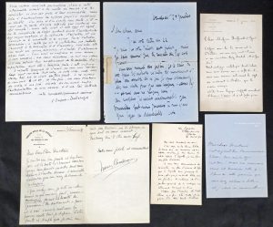 Paris, Anvers, Genève, Le Vésinet, Torre del Lago, Nancy, 1903-1919. 15 doc. : 13 l.a.s. de 1 à 2 pp. et 1 l. tapuscrite signée de 2 pp. (1 enveloppe cons.), 1 photo dédicacée de Massenet (1 doc. déchiré). Intéressant ensemble témoignant des liens d'artistes internationaux avec le Théâtre de La Monnaie et ses directeurs Maurice Kufferath (1852-1919) et Guillaume Guidé (1859-1917). Il contient des lettres de célébrités comme Giacomo Puccini - à propos de la seconde de "Madame Butterfly" -, Gabriel Fauré, Paul Dukas - au sujet d'"Ariane et Barbe Bleue" -, d'autres compositeurs (Gabriel Dupont, Francis Casadesus, Émile Jacques-Dalcroze, Alfred Bruneau, Pierre de Bréville, Reynaldo Hahn, Jean Block, Guy Ropartz), ainsi que de la comédienne belge Berthe Bovy et de Henri Chapot, descendant par sa mère de la famille d'Hector Berlioz (à propos e.a. d'une lettre autographe de celui-ci). Portrait de Jules Massenet avec envoi à Yvonne Guidé.