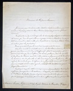 Munich, 4 novembre 1861. En français, 2 pp. sur papier in-4° (papier lég. bruni, plis, pet. déchirures marg. dont une restaurée au papier collant). Curieuse lettre de félicitations adressée à Jean Husson (1828-1868), professeur à l'École de médecine vétérinaire de Bruxelles, à propos de la propagation des "races bovines désarmées" (sans cornes), développant les inconvénients de cette "armure" et exhortant à poursuivre cette "oeuvre que nous venons de reconnaître comme étant non seulement agricole, mais humanitaire, je dirais même chrétienne, puisque les vaches désarmées sont moins dangereuses que les autres pour notre prochain" (!). Écrite par un secrétaire et signée par le prince Adalbert, plus jeune fils du roi Louis Ier de Bavière.