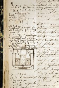 [ Namur, 4 octobre 1843 [- 3 août 1844]]. In-8° carré : [493] pp. (qqs pp. vierges). Rel. de l'époque : bradel demi-toile verte à petits coins, plats de papier marbré, dos lisse (qqs us., coupes inf. fort émoussées). Manuscrit attribué au mathématicien Dandelin, probablement préparatoire à une publication, portant sur l'hydraulique, les fluides, la mécanique, l'optique, le magnétisme terrestre, la lumière, l'hydrostatique, les instruments scientifiques (baromètre, lunette astronomique, soufflet hydraulique, microscope solaire...), etc. Avec des notes ou précisions dans les marges, les formules mathématiques correspondantes et illustré de nombreux schémas. Géoomètre et polytechnicien Dandelin (Le Bourget 1791-1847 Bruxelles) revint en Belgique, après la défaite de Napoléon, où il fut nommé officier du Génie dans l'armée des Pays-Bas. Il cumula les fonctions militaires et civiles en se chargeant de la refonte des fortifications de la citadelle de Namur et en occupant la fonction de professeur à Liège et à l'Athénée de Namur. Avec son ami Adolphe Quételet, il fit d'importantes recherches en géométrie théorique, son nom reste associé à la sphère de Dandelin et à la méthode de Dandelin-Gräffe. Il fut membre de la loge La Bonne Amitié à l'Orient de Namur, élu à l'Académie Royale des Sciences de Bruxelles et fut nommé colonel en 1841 avant de mourir subitement.