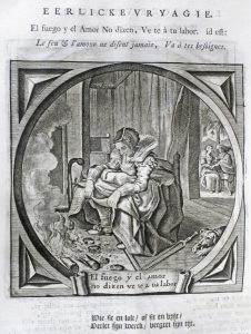 t' Amsterdam, bij Johannes Ratelband, de Wwe Jan van Heekeren, Hermannus Uytwerf, Isaak van der Putte, [en te] 's Gravenhage, [bij] Pieter van Thol en Pieter Husson, 1726. 2 vol. in-f° : [24 incl. gegrav. titel en portret]-666-[10] pp., fig.; [22 incl. gegrav. titel en portret]-608-67 pp., 8 pl. waarvan 3 op dubbele blz., fig. (I: 27 gescheurd zonder verlies, II: katern *Eee tussengevoegd pp. 392-393, marg. vlek en wormgaatje achteraan; enkele fouten in de paginering, roest- of inktvlekjes, bleke watervlek in ondermarge van enkele bln). Eigentijdse volle banden van kalfsleder : rug met ribben, titelschild en goudstempeling, gesprenkelde sneden voorzien van strookjes (kapitalen ontbreken, scharnieren deels gesplit en scharnier vol. II gebroken, platten gevlekt, slijtage aan platranden -en hoeken). Mooie en rijkelijk geïllustreerde uitgave met in het 1ste deel een gegraveerde titel, 3 tussentitels met vignet, het portret van Cats door M. Natalis naar Dubordieu en 273 emblemen, allegorieën en andere tekstfiguren op koper gegraveerd door J. Swelinc, J. Matham, D. van Bremden, W. Hondius, C. van Dalen en J. Goeree naar A. van de Venne e.a. In het tweede deel treft men het portret van Cats door M. Mosyn, het portret van Anna Maria Schuurman, 5 gegraveerde tussentitels, een tussentitel met groot vignet, 3 koperplaten op dubbele bladzijde ("Het huwelijk als visfuik", "Sic transit gloria mundi" en "De dood van Frederik Hendrik van Oranje") en 143 tekstfiguren waarvan 1 op volle blz.