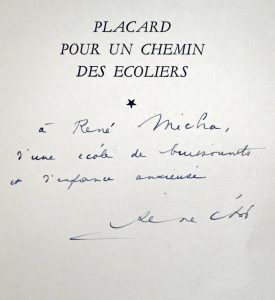 ENVOI AUTOGRAPHE signé de Char à René Micha (1913-1992), poète, critique d'art et scénariste belge.