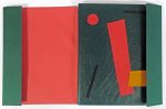 S.l., ( G.L.M., 15 décembre 1937). In-8° carré. Relié par Marie-Thérèse Vercheval : plein maroquin vert émeraude avec application brute de morceaux de peau (chagrin ocre, cuir rouge, veau noir sur le contreplat sup.), dos lisse, gardes de papier peigne en variation de couleurs réalisé par la Hollandaise Karli Frigge, couv. et dos cons. Sous chemise en toile verte doublée de Canson rouge et dos en film plastique. Sous étui bordé de cuir rouge et couvert de toile verte (us. aux joints). ÉDITION ORIGINALE de ce recueil de poésies dédié aux enfants de la guerre civile espagnole. Tirage à 335 ex., un des 280 sur roto teinté illustrés de la reproduction des pointe-sèches de Valentine Hugo (n° 115).
