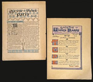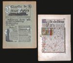 Paris, Au Vieux Paris, n° 1, 13 avril 1900 [- n° 14, [1900]]. 14 bifolios (rouss. ou piqûres sur les n° 1 et 6 ou seulement sur le bord g. du plat sup. du n° 7, bords du n° 5 lég. passés). COLLECTION COMPLÈTE de cette revue bimensuelle dont chaque numéro pastiche une période de l'histoire allant des Gallo-romains à Bonaparte, et est imprimé sur un papier, une mise en page et un logo différents. C'est à l'occasion de l'Exposition universelle de Paris de 1900 que ROBIDA initia ce projet, faisant appel à Jules Verne, Jules Claretie, François Coppée, Émile Bergerat, Pierre Loti, Anatole France, Maurice Barrès... La revue est illustrée avec talent par Robida.