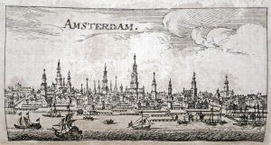 Franckfurt und Leipzig, Christoff Riegel, 1691. In-16° : [8]-1078-[10] pp.; 120 h.-t. (rouss.). Rel. de l'époque : plein parchemin, armoiries sur le plat sup., dos lisse avec titre ms., tr. bleues (inscription ms. au plat sup., restes de 2 fermoirs, taches et souillures). ÉDITION ORIGINALE. Ex. complet des 120 plans et vues de villes des anciens Pays-Bas : Bruges, Bruxelles, Gand, Malines, Namur, Ostende, Ypres, La Haye, Amsterdam, Groningen, Leyde, Rotterdam, Utrecht, Lille, Dunkerque, Arras, etc. Comme toujours, la très rare carte des XVII Provinces annoncée au titre est absente. Elle fut publiée séparément la même année dans un format (46,8 x 54,3 cm) incompatible avec celui de l'ouvrage ("Die Karte von Riegel erschien zwar auch selbständig, sie wurde aber paralell zu einem Buch von ihm verkauft, dem sie wegen des kleinen Formats des Buches nie beigebunden wurde", # Van der Heijden citant Stopp).
