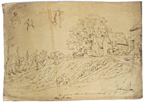 CELS, Jean-Michel (1819-1894).- " Vue prise au village de Spy" avec études de personnages.