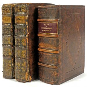 Amsterdam, Pierre Michiels, 1729. 2 vol. in-8°; 4 h.-t. (texte n.c., vol. lég. jaunis sauf en de rares endroits, mouill. marg.). Rel. de l'époque : pleine basane marbrée, dos fleuronnés dorés à nerfs, tr. rouges (mors en partie fendus, pet. manques de cuir, taches, coupes et coins fort émoussés). ÉDITION ORIGINALE de la continuation de l'ouvrage de Strada, traitant des procès des comtes d'Egmont et de Hornes, très probablement publiée sous la direction de Jean Godefroy. Illustré de 4 portraits : ceux des comtes précités, celui de Philippe II et celui du duc d'Albe.