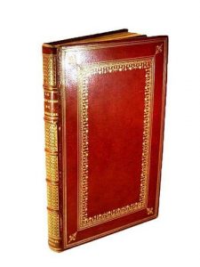 La reliure est signée Lebrun, le célèbre relieur de Jules Janin, du Baron Taylor, etc. Reliure en plein maroquin, dos à nerfs et caissons richement ornés de volutes, plats ornés d'encadrement à la Duseuil avec une fine dentelle, filet sur les bords, riche dentelle intérieure, toutes les tranches dorées. Légères rousseurs. (Fléty, 107 ; Mennessier de La Lance, 326).