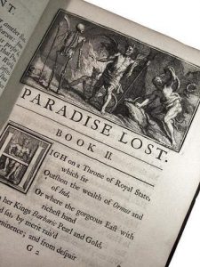 Milton est mort en 1674 et quatorze années plus tard, en 1688, Jacob Tonson (1655-1736), l'éditeur anglais détenant les droits sur Shakespeare, publia la première édition illustrée du Paradis Perdu. Puis en 1720 Tonson imagina une édition luxueuse et fit appel à un réfugié protestant français, Louis Chéron (1660-1725), pour assurer la nouvelle illustration. 17 compostions furent confiées à Chéron (plus une à James Thornhill) qui était passé maître dans la décoration. Il renouvela le genre en gommant tous les détails et les arrières plans pour ne laisser que des personnages dans des expressions spectaculaires (voyez sa représentation de Satan).