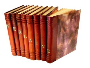 Ensemble complet de ses huit volumes, chaque dos ayant une lettre doré de « Verlaine » et têtes dorées.