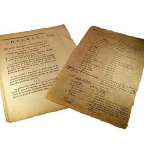 Édition originale filigranée du décret n°1312 organisant la répression vendéenne.