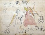• un feuillet avec visages, croquis de mode, Annonciation…