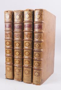 4 vol in-folio veau moucheté, dos à nerfs orné avec pièces de titre et de tomaison.